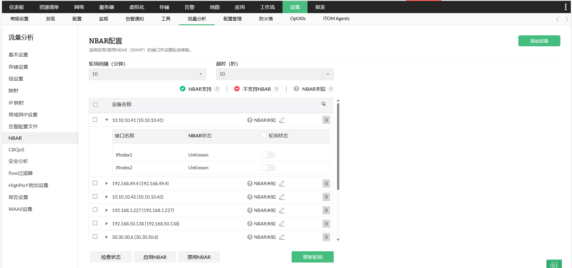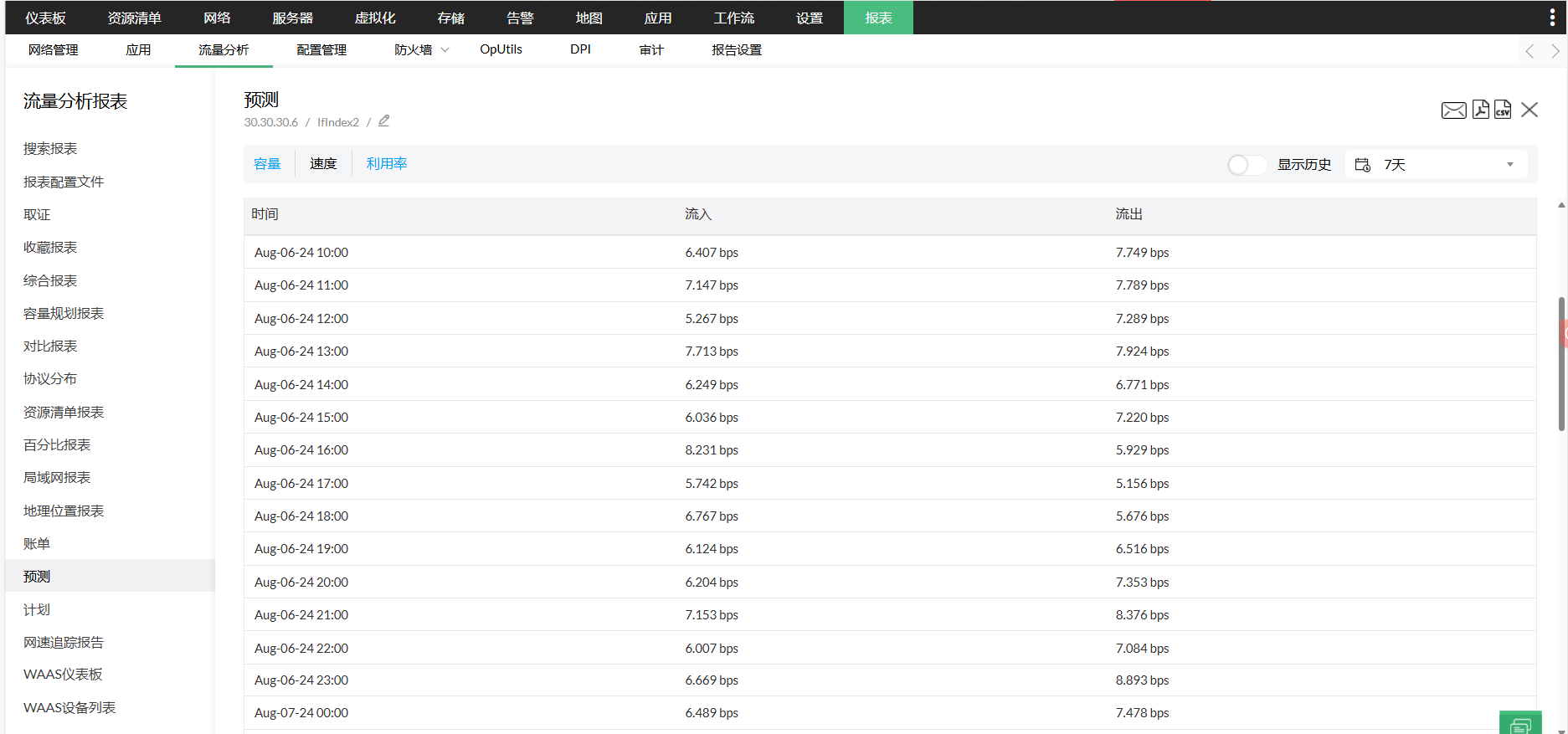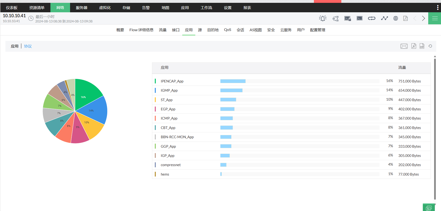 通过各种网络流量报表,了解您的网络流量是由什么组成的。您可以使用分析您的网络流量,NetFlow支持NetFlow版本 5、7、9,sFlow、cflowd、jFlow、IPFIX、NetStream和Cisco NBAR技术。