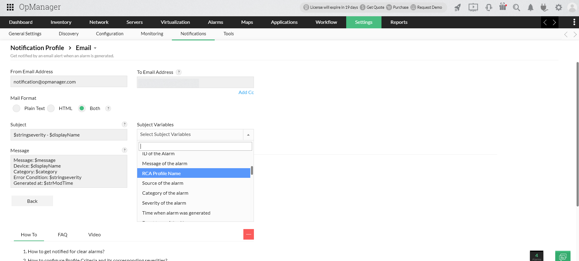 在OpManger中配置通知配置文件可以让您通过各种渠道接收即时通知,例如电子邮件、短信等。