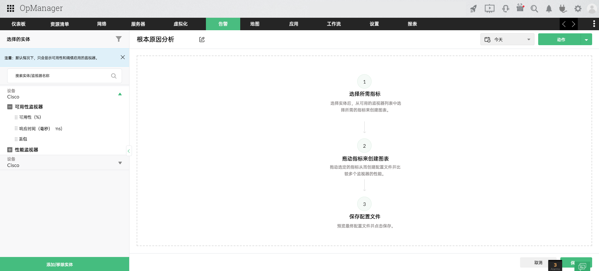 随着新的根本原因分析(RCA)功能的推出,ManageEngine OpManager的网络监控能力得到进一步增强。RCA与选项捆绑在一起,使您能够从各种网络组件中整合IT数据并简化性能分析过程。