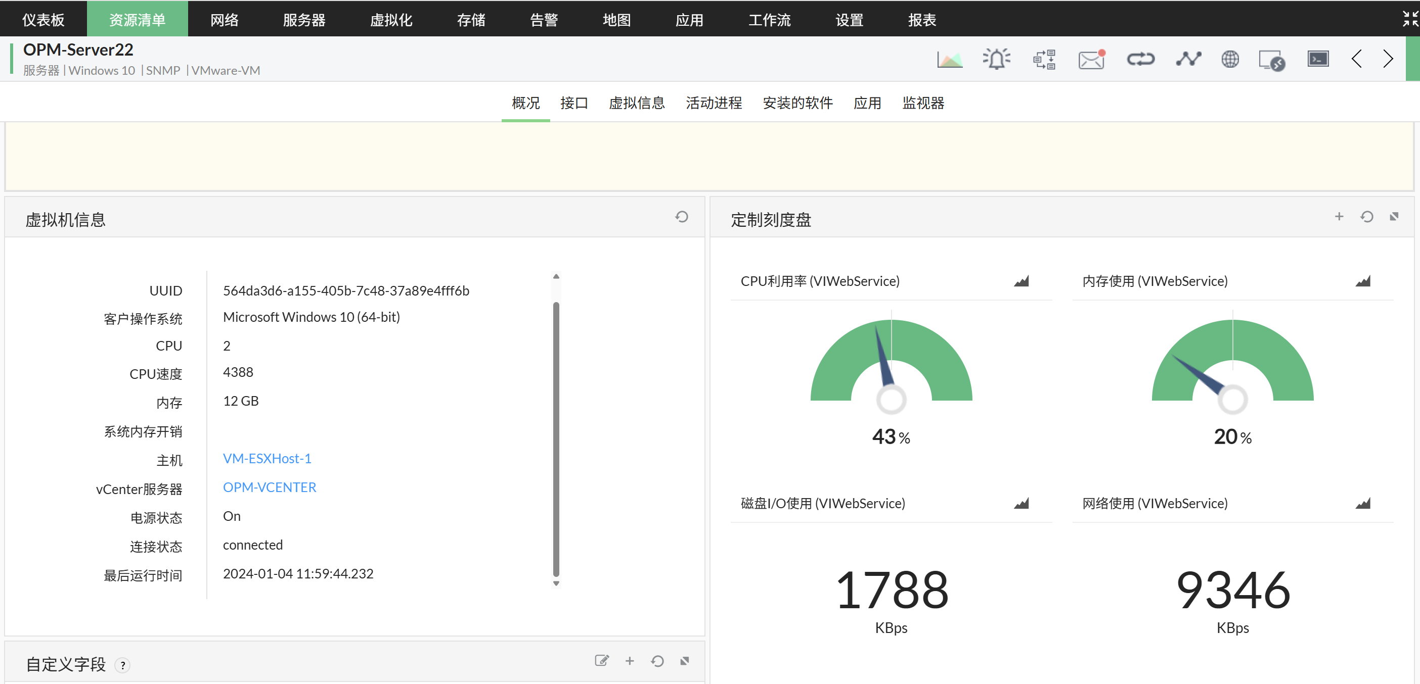 一旦知道在各种性能指标中该关注哪些内容,修复虚拟机问题就相对简单。ManageEngine OpManager 是一款集成的网络监控软件,可帮助您监控和维护部署在您网络中的虚拟化系统。借助对多种虚拟机厂商的广泛支持,包括 VMware、Microsoft 和 Citrix,OpManager 的 虚拟机监控 为您提供对主机上所有虚拟机进行映射、监控,并收集其实时和历史性能数据的功能。