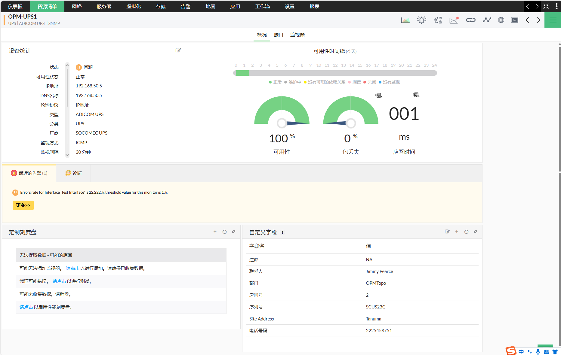 使用综合UPS电源管理软件OpManager监控UPS和相关的UPS监测指标。