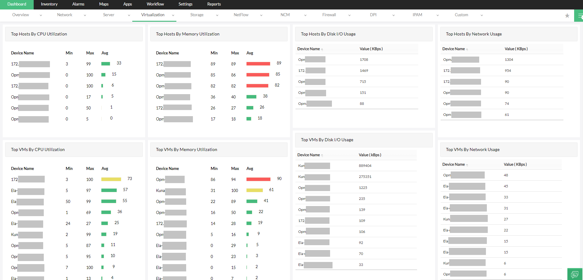 OpManager针对虚拟服务器提供全面的监控功能,可帮助IT管理员识别瓶颈并解决关键性能问题。它甚至可以通过对监控VMware、监控Hyper-V以及监控Citrix XenServer的支持来监控混合虚拟环境。