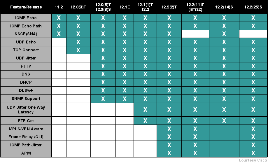 点击这里 查看支持IP SLA的Cisco IOS版本图表, 对于支持IP SLA大的Cisco设备列表,点击这里。更多管理Cisco IP SLA的信息,请参阅这里