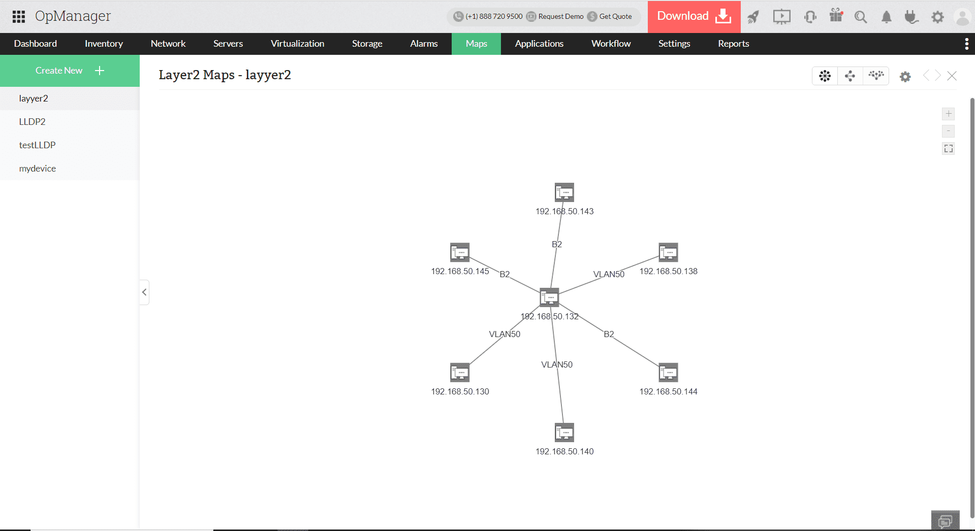 OpManager的Layer 2映射是网络管理员的重要工具,通过映射连接到种子路由器的所有网络节点,可视化其复杂IT基础架构的网络拓扑。通过 OpManager的Layer 2映射发现,网络管理员可以发现种子路由器并实时监控连接到它的所有设备,这可以防止网络管理员被来自网络上每台设备的警报淹没。OpManager的Layer 2映射可以使用各种协议进行发现,包括: