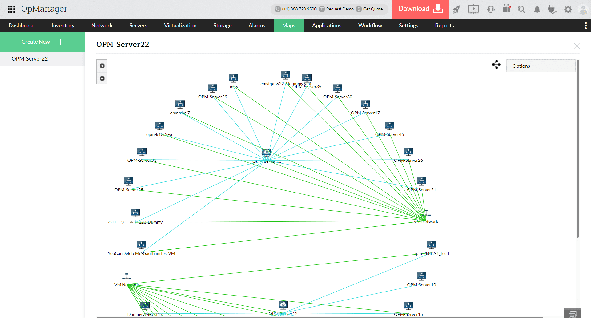 OpManager的虚拟拓扑图为网络管理员提供了重要的帮助,使虚拟基础设施、主机、虚拟机和集群可视化。通过OpManager的VMware映射,管理员可以查看vCenter、关联的主机和虚拟机的详细映射关系。此外,对于Hyper-V设备和Nutanix集群,管理员可以轻松查看它们的依赖关系和VM计数,这些不同的映射选项快速展示了虚拟基础架构的状态以及主机、虚拟机和集群之间的互联关系,大大提高了虚拟网络拓扑管理的效率。