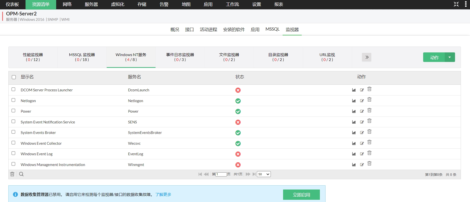 OpManager既允许用户在本地监控windows服务,也可以面向网络中的多个服务器远程监控windows服务。OpManager通过WMI来监控Windows服务,而且不需要在远程机器上安装代理。