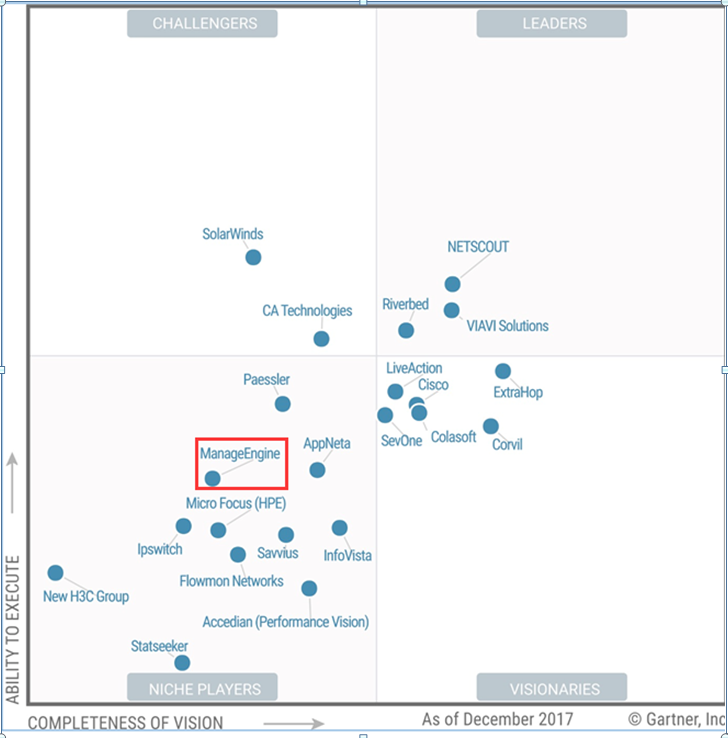 ManageEngine OpManager是一个集成的IT管理平台,提供网络性能监控,物理和虚拟服务器监控以及基于流量的带宽分析。深度包检测(DPI)是2017年2月的一项功能,随后于2017年8月完全纳入新版本OpManager Plus。除了NPMD功能之外,ManageEngine还提供了有用的补充功能,包括APM,IP地址管理(IPAM),服务台,日志监控和安全合规性功能。最终用户调查表明ManageEngine的成本和易维护性令人满意。