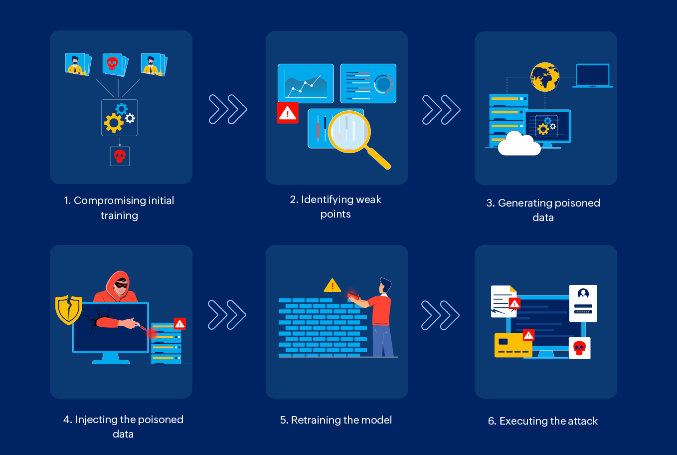 通过分析模型的决策和预测方式,攻击者识别模型的弱点,找到可以被操纵的潜在数据点。找到弱点后,他们创建与原始数据集相似的对抗性数据样本,这些样本一旦加入训练集,将导致模型生成错误预测。