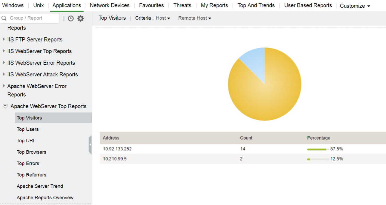 EventLog Analyzer 是一种日志管理解决方案,可以收集、解析和分析所有版本(包括Apache Tomcat服务器日志)的Apache日志。这款多功能的日志管理工具,使组织能够主动管理和分析其 Apache 访问日志。它有助于确保其 Web 服务的安全性和可靠性,并帮助组织更深入地了解服务器的性能和用户交互。