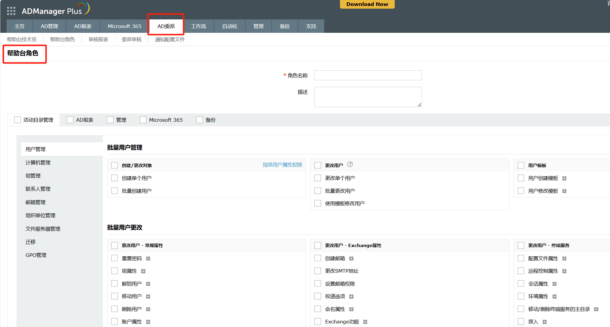 ADManager Plus 通过以下方式助力基于角色的访问控制(RBAC)的实施: