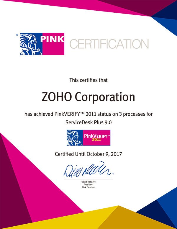 卓豪ITSM软件ServiceDesk Plus,继2014年首次通过Pink Elephant粉象PinkVERIFY ITIL® V3认证后,近日再通过服务请求履行(Request Fulfillment)流程兼容性认证,至此共完成ITIL 2011三大流程的评估:变更管理、事件管理和服务请求履行。