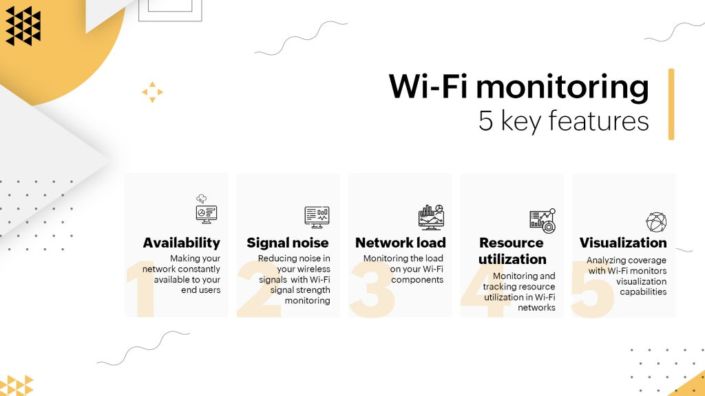 在这篇博文中,我们讨论了 WiFi监控解决方案提供的功能,以避免遇到网络事故。我们研究了五个主要功能,其中包括: