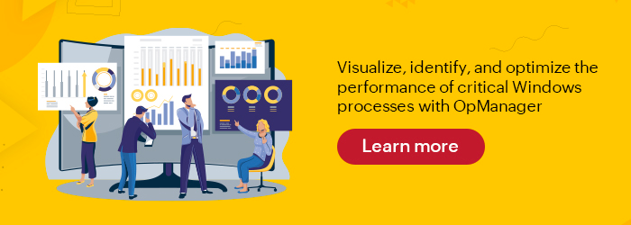 中号全线监测和管理网络中的所有Windows服务器的关键Windows进程是一条死胡同任务; IT 管理员将面临一个艰难的时期,分别检查每个流程以检查是否存在潜在的问题迹象。借助成熟的 Windows 进程监控解决方案,例如 ManageEngine OpManager,您可以主动监控关键的 Windows 进程,并通过单个窗格中的直观仪表板可视化进程的状态和其他关键网络指标。