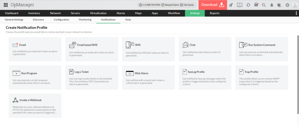 部署 OpManager 等有效的 Windows 流程监控软件,通过电子邮件、短信、slack 等方式向利益相关者发出警报;通过与 ServiceDesk Plus 和 ServiceNow 等 ITSM 工具的集成,关键 Windows 流程中的关键问题可以作为票证传递,确保立即引起注意。