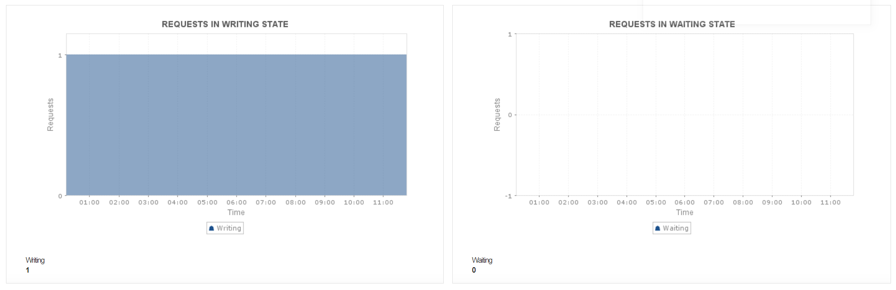 如果您在“等待中”状态下看到数量异常,则可以快速发现问题,例如性能降低。您还可以通过比较正在处理请求的值与处于空闲状态请求的值来分析服务器的效率。