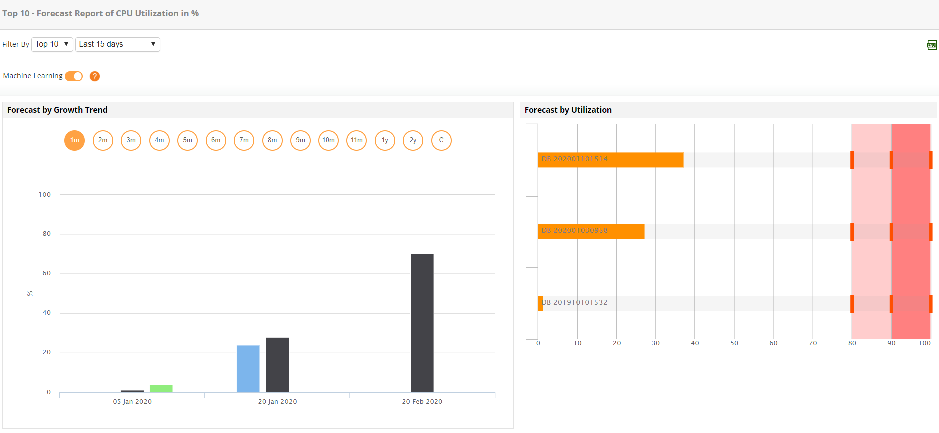 Applications Manager还具有基于AI的分析功能,可帮助您可视化当前资源利用率并生成预测的未来趋势。这可以使您的决策过程更加轻松。