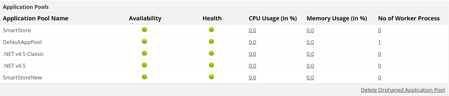 如果您的IIS应用程序池由于致命的应用程序错误,错误的配置或其他问题而崩溃,则该应用程序将停止运行。监控应用程序池使用的资源(CPU和内存)及其运行状况和可用性始终是一个好习惯,以使其保持在可接受的范围内并避免不必要的短缺。通过标识消耗大量CPU和内存的应用程序池,可以通过分配补充资源(如果该池正在运行)并删除未运行的池来优化性能。