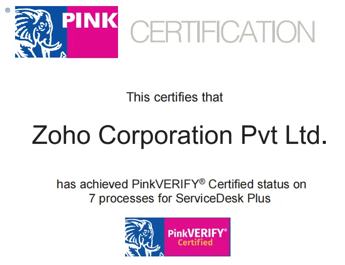 我们又一次做到了!ServiceDesk Plus 现已获得 CMDB 和发布部署过程的 PinkVERIFY™ (粉象)认证。