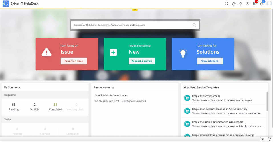 ServiceDesk Plus 拥有直观的自助服务门户,为用户提供便捷的导航和资源访问,确保操作流畅无阻。企业可以利用它来展示 IT 服务目录,让员工更轻松地选择所需的服务。