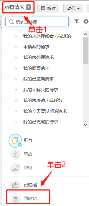 请单击左角的请求过滤器->回收站。参阅下面的屏幕截图。