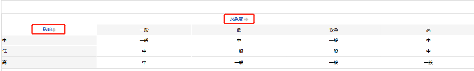 优先级矩阵根据工单的影响度和紧急度自动划分等级,管理员要根据不同事件的影响度和紧急度对其进行一次性配置。