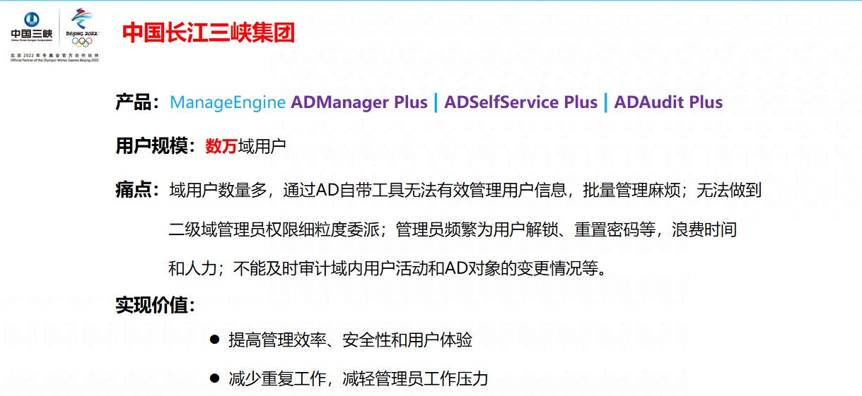 经过ManageEngine卓豪一系列的测试,部署,最终长江三峡集团实现了: