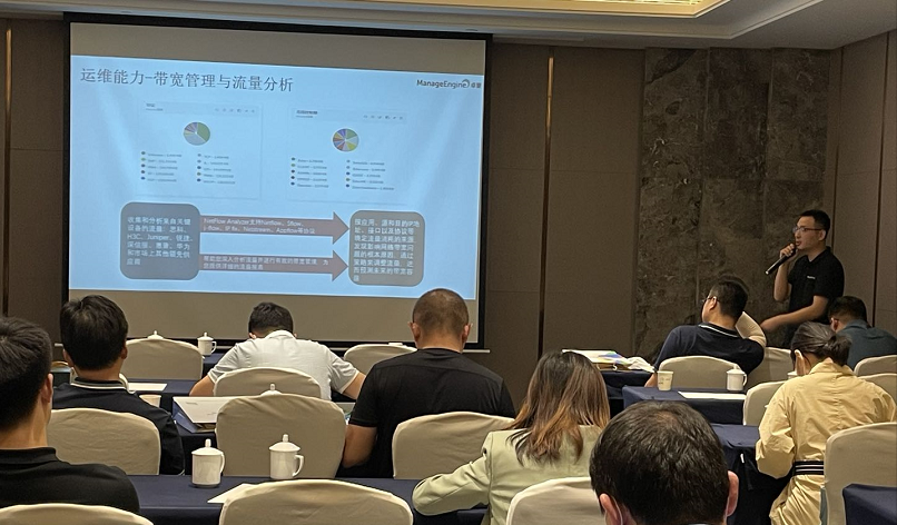 在现场,ManageEngine卓豪COO李飞先生,副总经理侯康选先生,解决方案部经理张东昱先生,解决方案专家王丽君女士、赵春明先生,山东云领未来信息技术有限公司(ManageEngine卓豪核心合作伙伴)总经理石统飞先生、技术总监陈磊先生等嘉宾出席活动,并为在场来宾奉上了一系列精彩演讲。