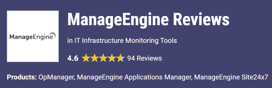 ManageEngine的OpManager在此项评选中获得了总共得到94位业内专业人士的青睐,最终得到平均分4.6(满分5分)的好成绩,其中55%打出了五分的最佳评价。