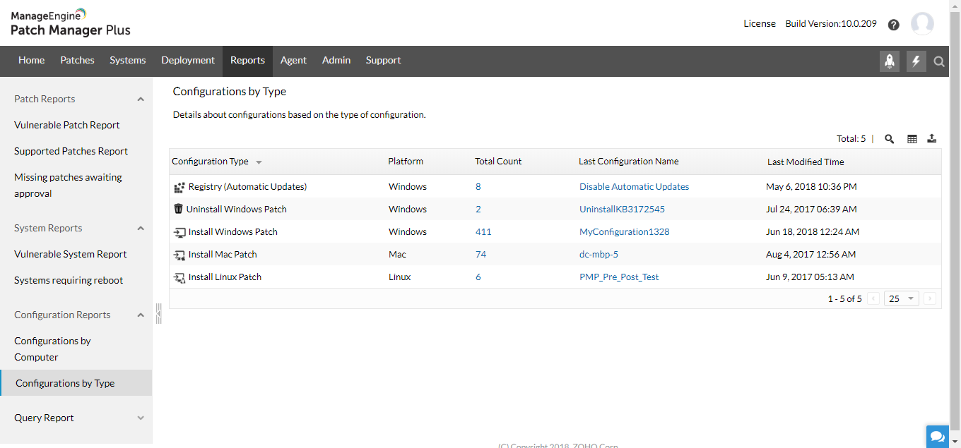 此报表根据应用的补丁配置类型列出有关配置的详细信息。