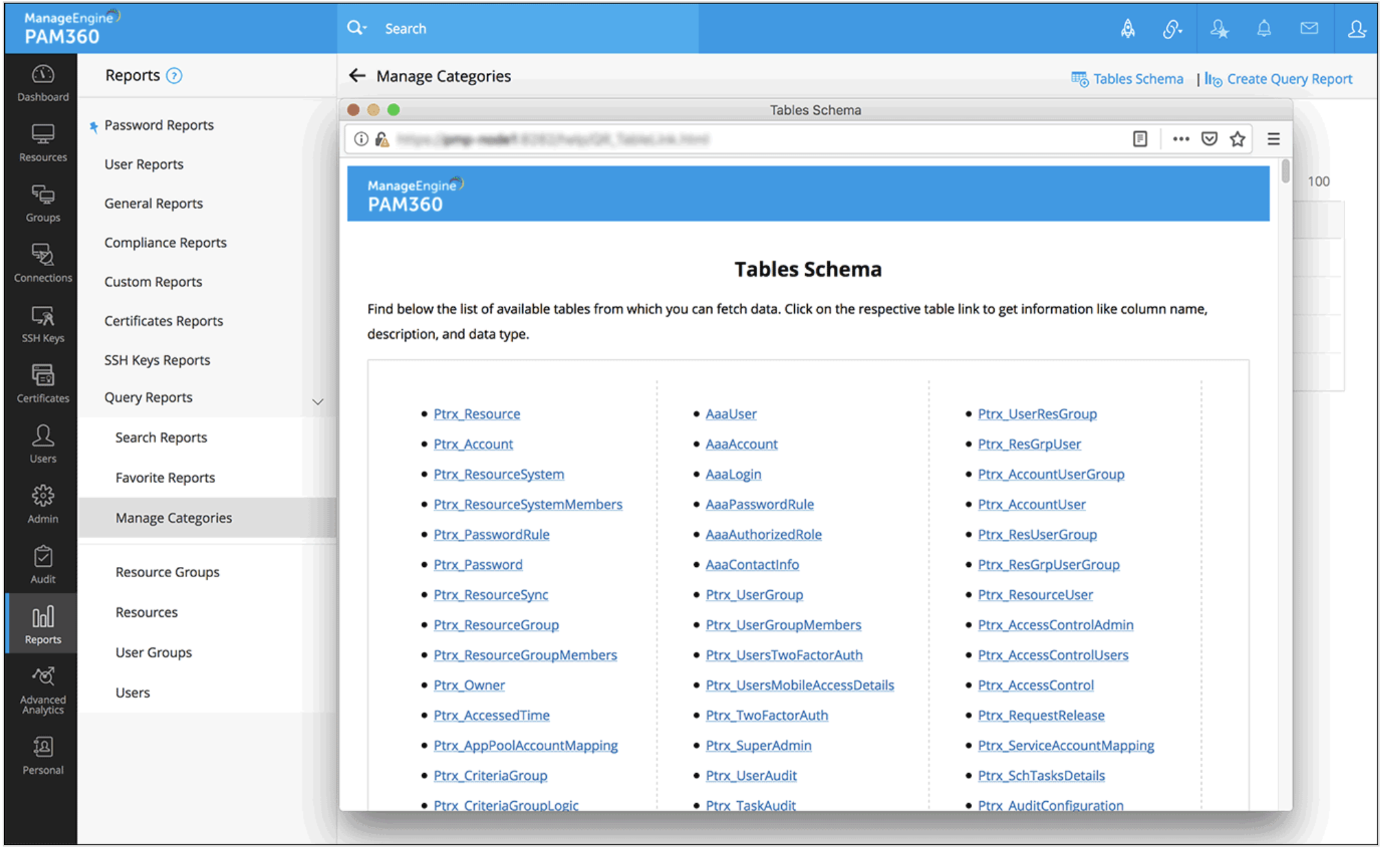 使用 PAM360,管理员可以查询数据库(通过编写自己的 SQL 查询或自定义现有查询)以直接从中提取特定信息。这些查询有助于从选定的表中获取信息,并将它们呈现为结构化报表以便于阅读。创建并保存查询报表后,管理员可以将它们配置为通过计划任务定期自动生成。单击此处了解有关查询报表的更多信息。