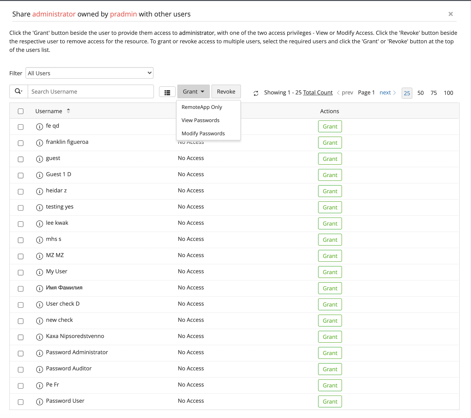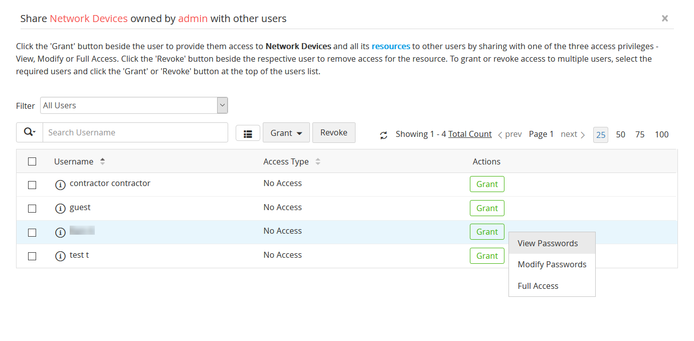 PAM360 允许共享密码和其他敏感信息以选择不同权限级别下的用户和组,例如查看、修改和管理。管理员还可以自行决定将其密码的所有权转让给其他管理员和用户。