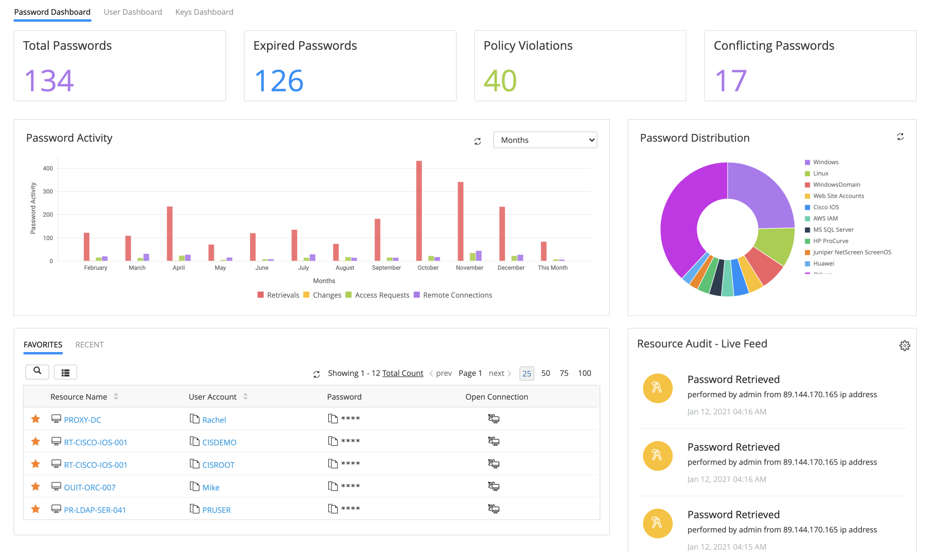 PAM360 提供有关密码访问和用户活动的全面、实时报表,帮助管理员及时了解与选择的密码和帐户有关的事件。