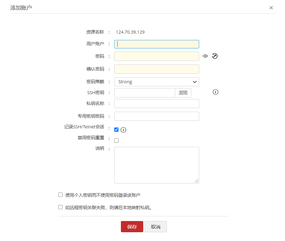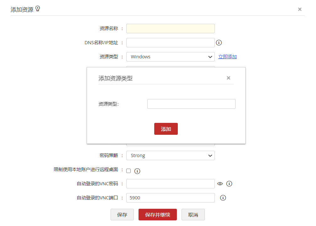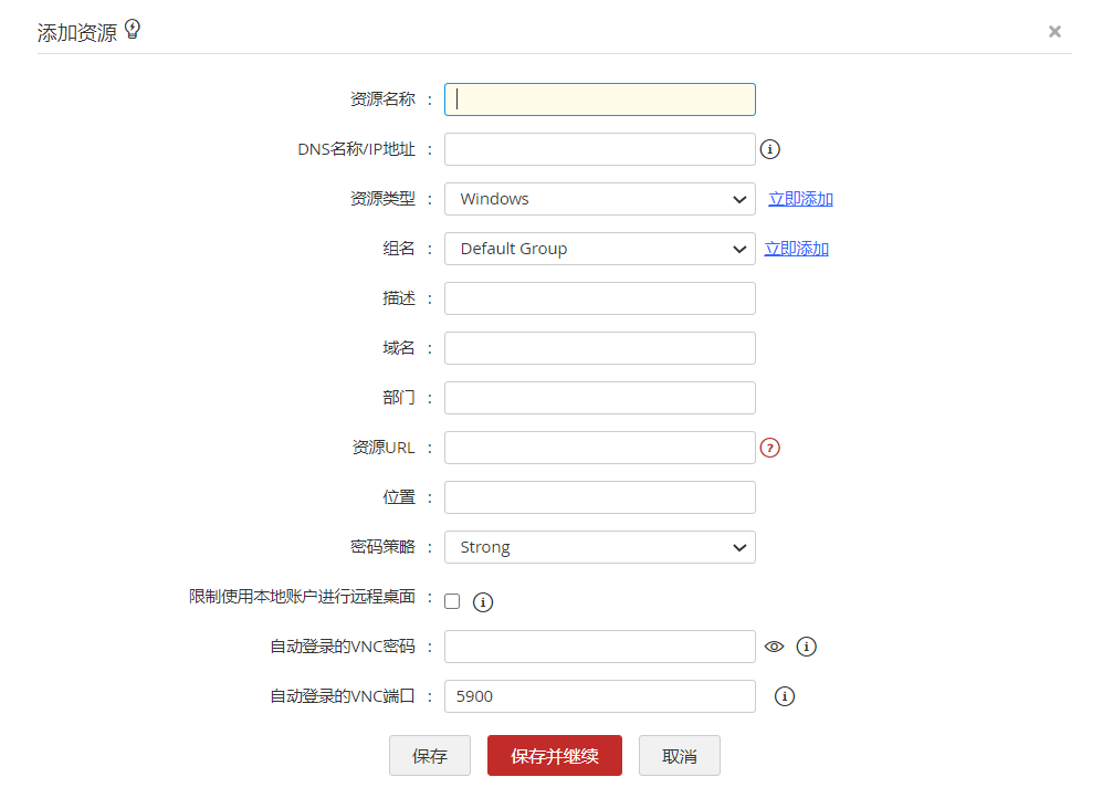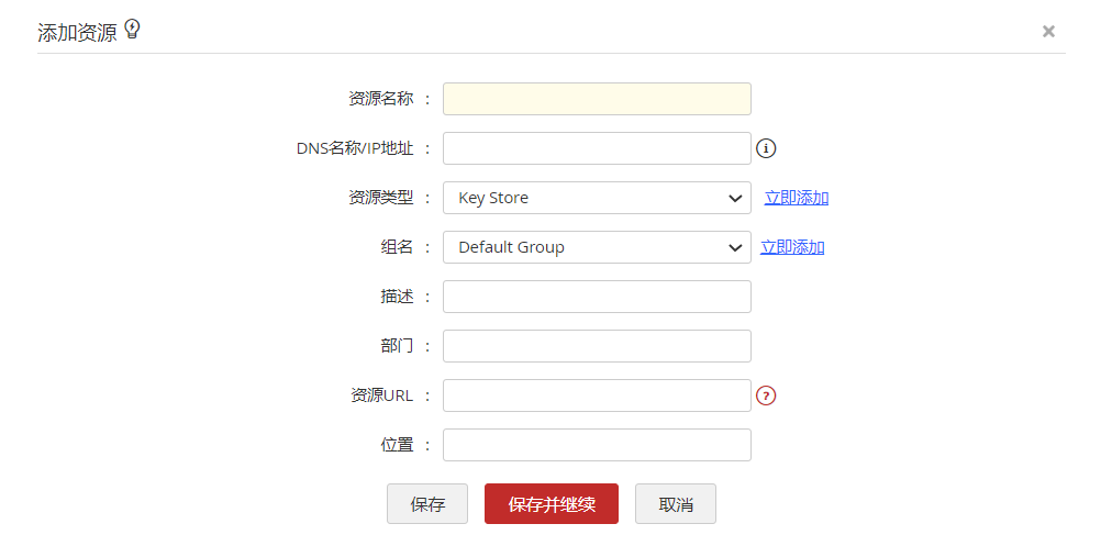 - 填写资源名称[必填],资源名称是在PAM360中对资源的唯一标识。