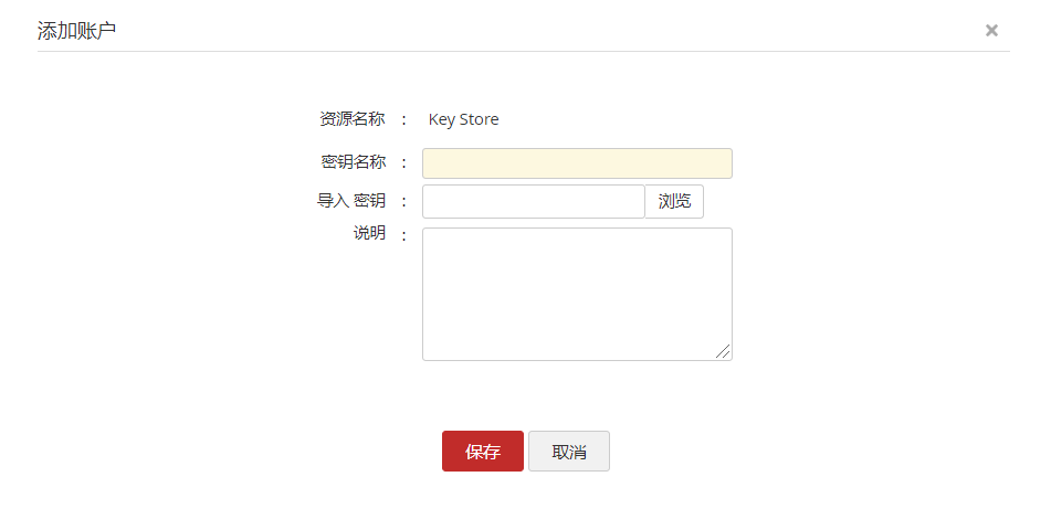 - 您还可以通过点击此字段旁边的立即添加选项来添加自定义资源类型。 在弹出窗口中输入自定义资源类型名称,如KeyStore,然后点击添加。