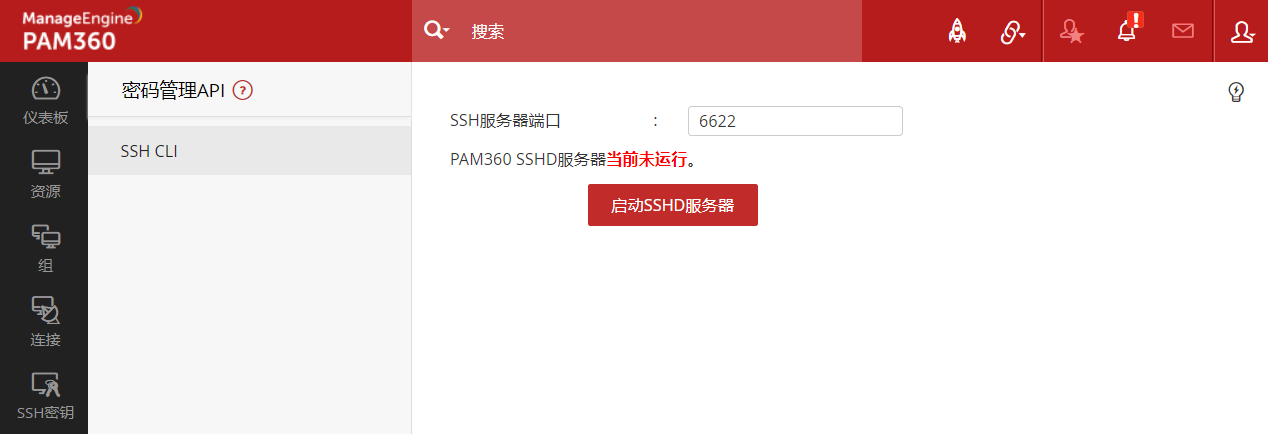 PAM360 内置 SSH 服务器。 默认情况下使用6622。 您可以按需更改此端口,然后重启SSH服务使之生效。
