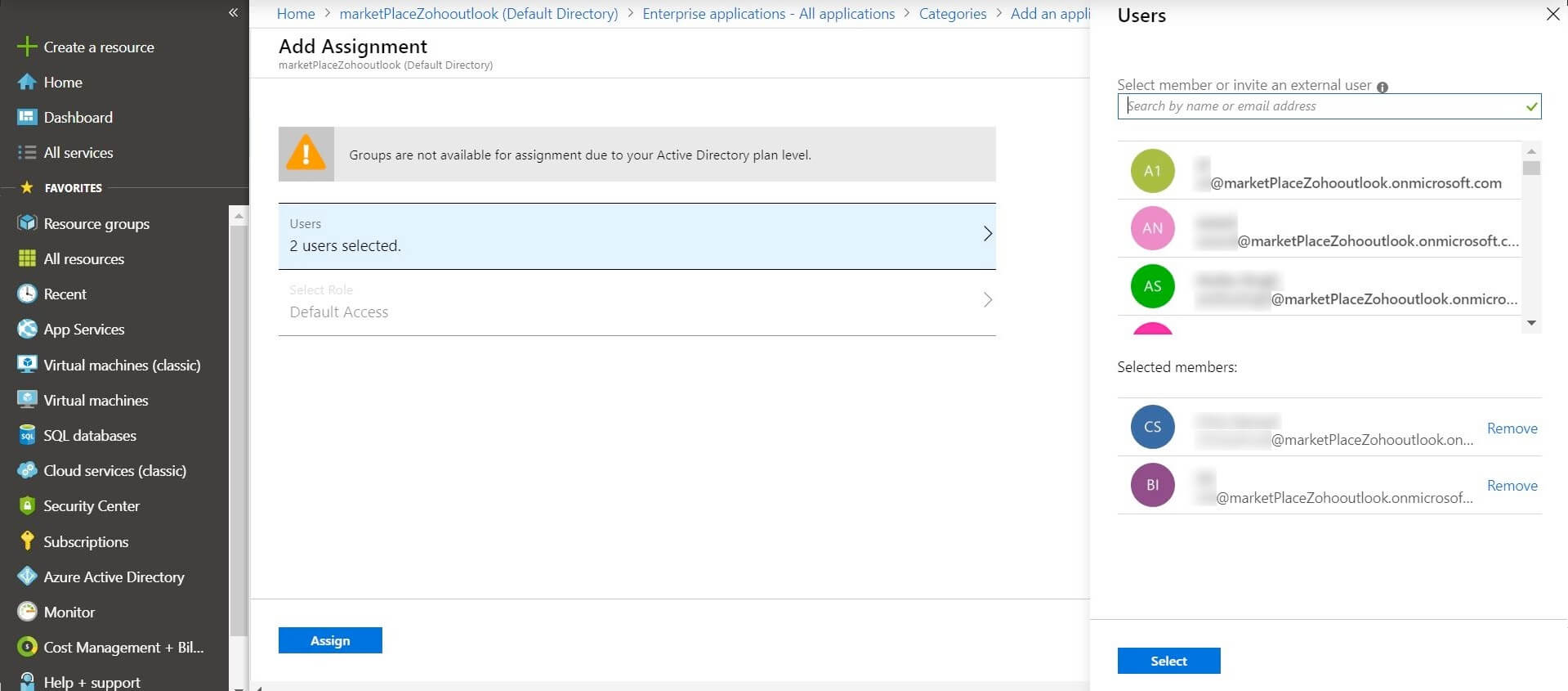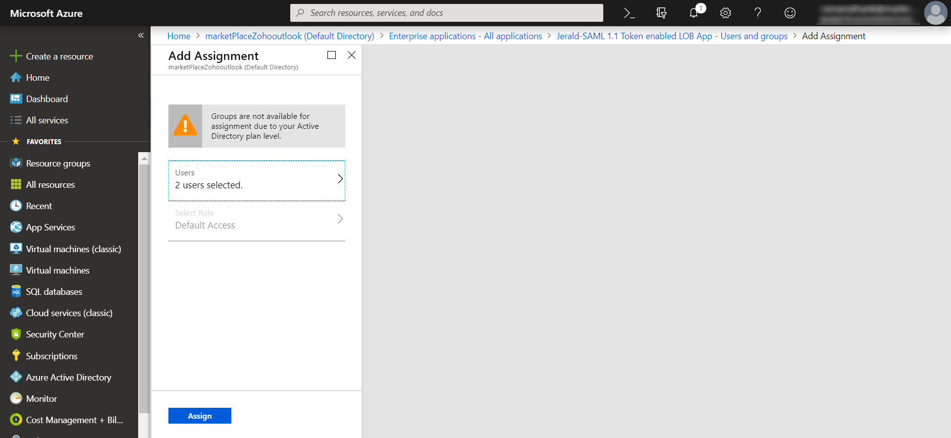- 选择要分配的用户后,点击分配,将用户分配给企业应用。