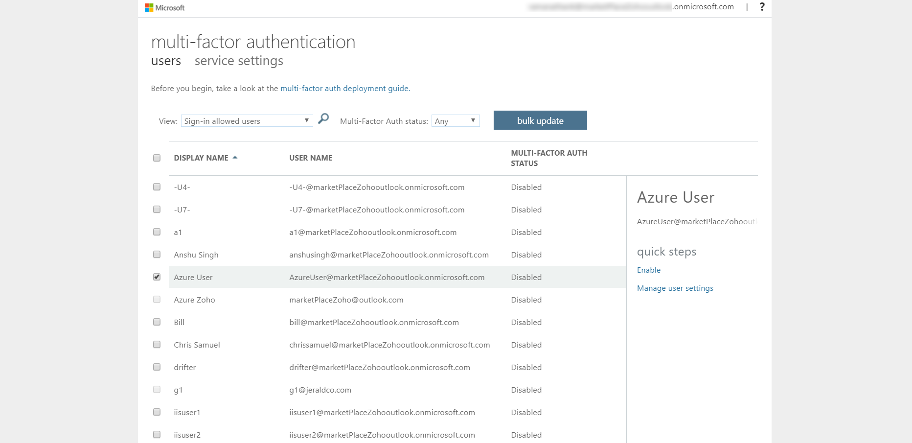为 Azure AD 用户启用 MFA 和设置首次登录的步骤