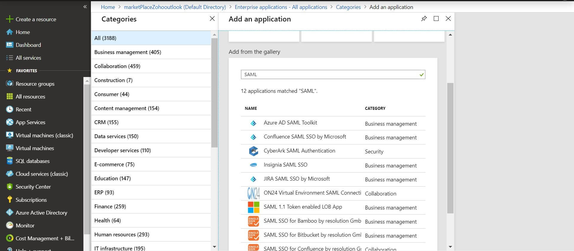 - 您将进入所有应用程序页面,该页面列出了您可以选择和添加的应用,请在在搜索栏中输入"SAML"并按下“enter”键。