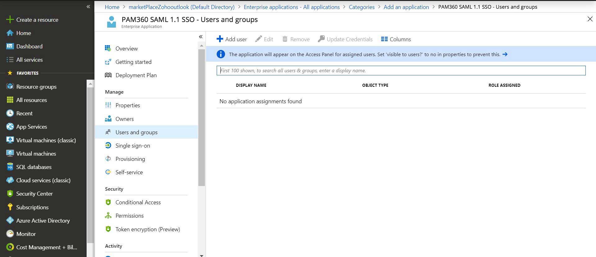 - PAM360 SAML 1.1SSO将被添加为一个企业应用。