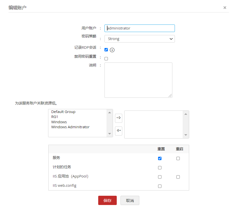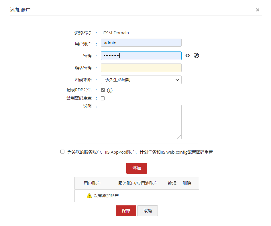 - 点击保存。 PAM360将立即立即重置域中的密码,然后,自动更新关联服务器上运行的IIS服务的密码。