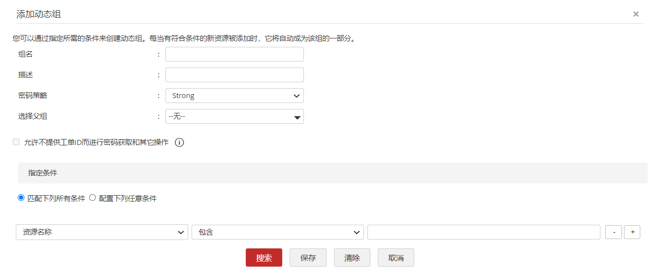 - 在打开的弹出窗口中,命名组并选择配置下列任意条件。