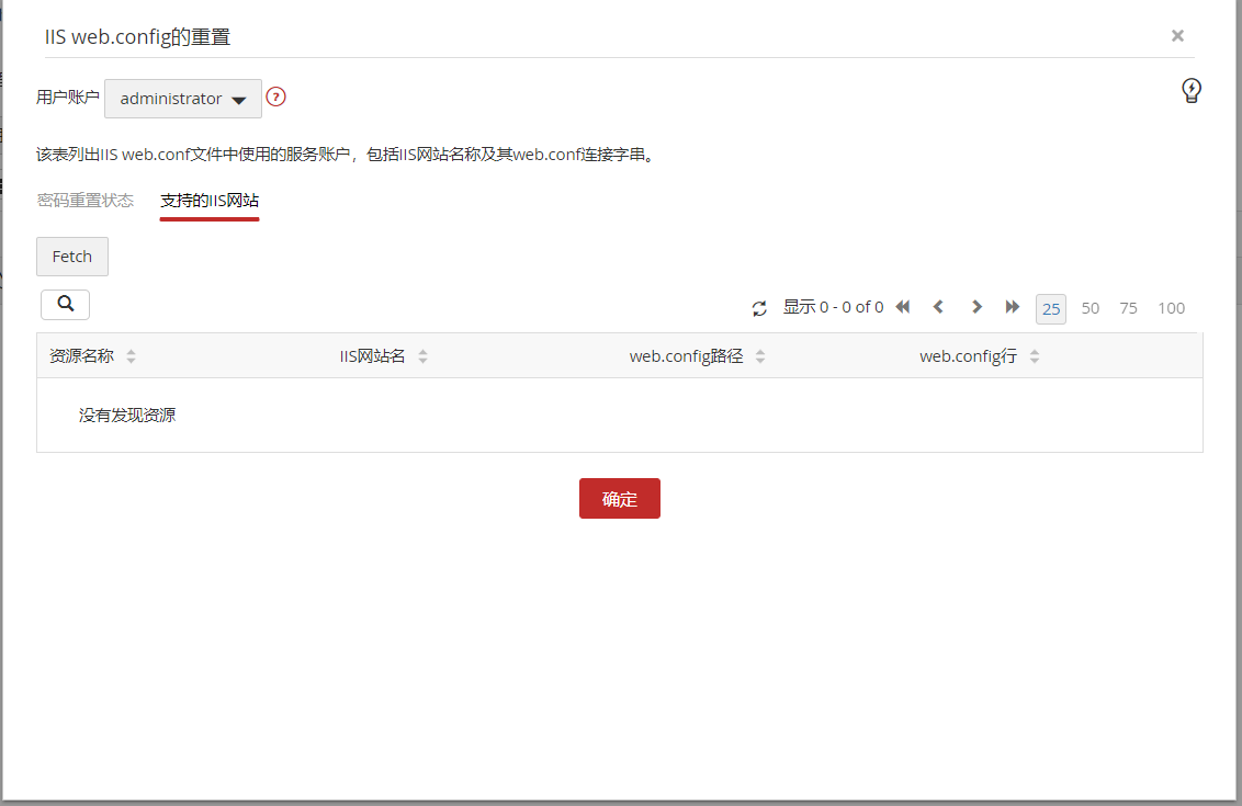 - PAM360 将扫描并列出在IIS网站的服务器中运行的所有网站,其中服务帐户用于Web.conf文件的连接字符串。 查看列表后,点击确定。