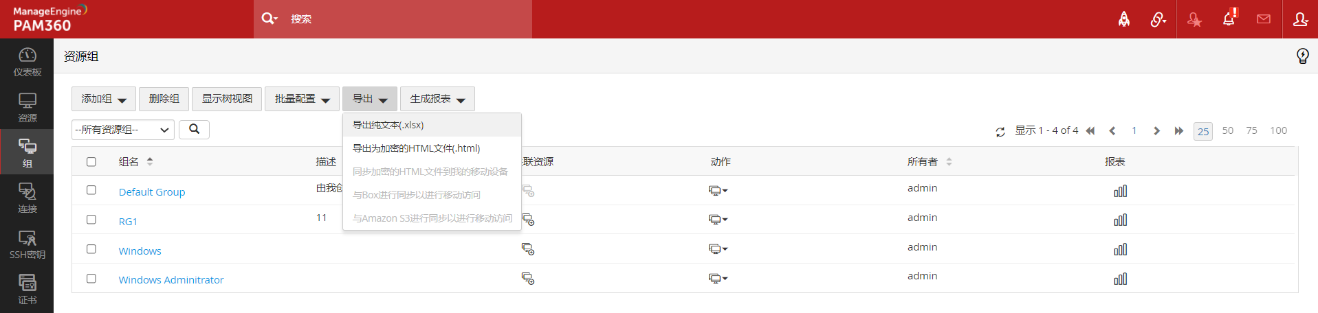 在上述所有选项中,您都可以将资源组内的资源、账户、密码导出为可离线访问的文件
