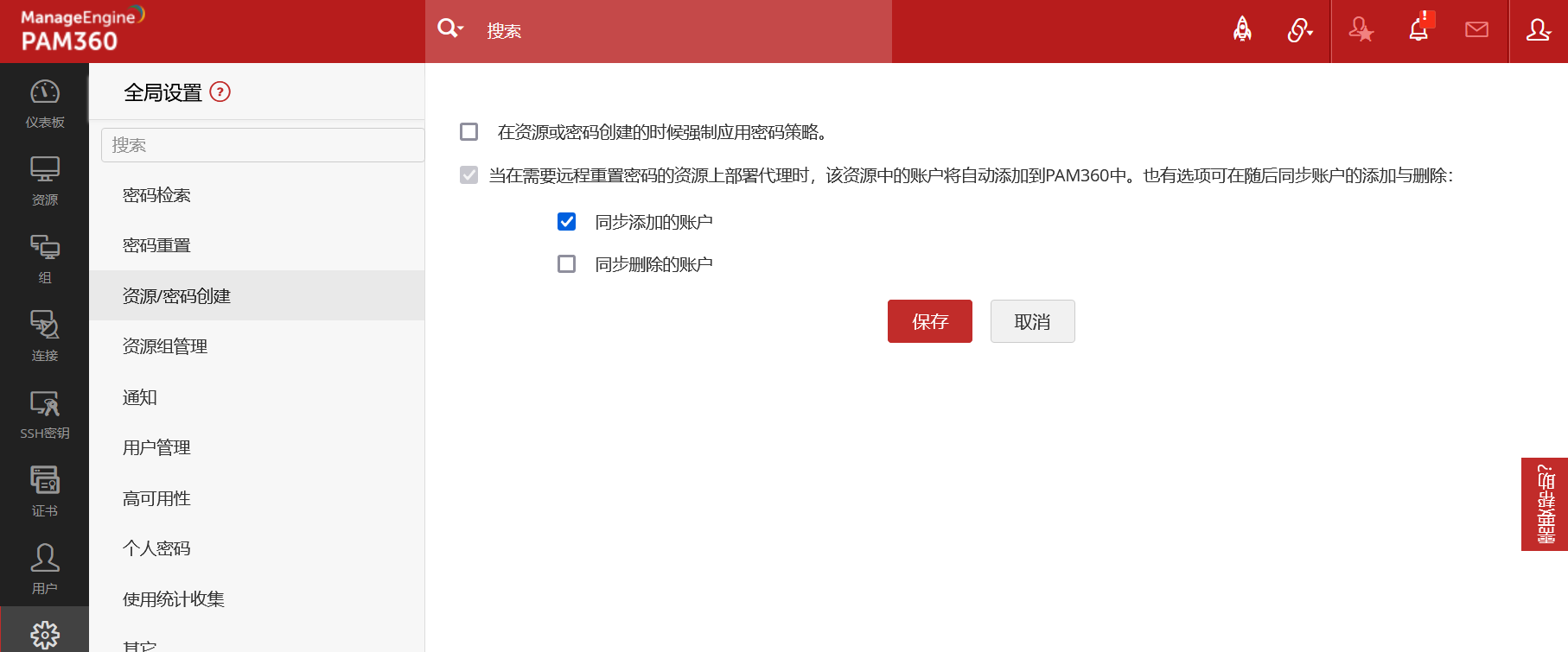 启用此选项后,无论合适在远程资源中删除账户,其将同时在 PAM360 中被删除。