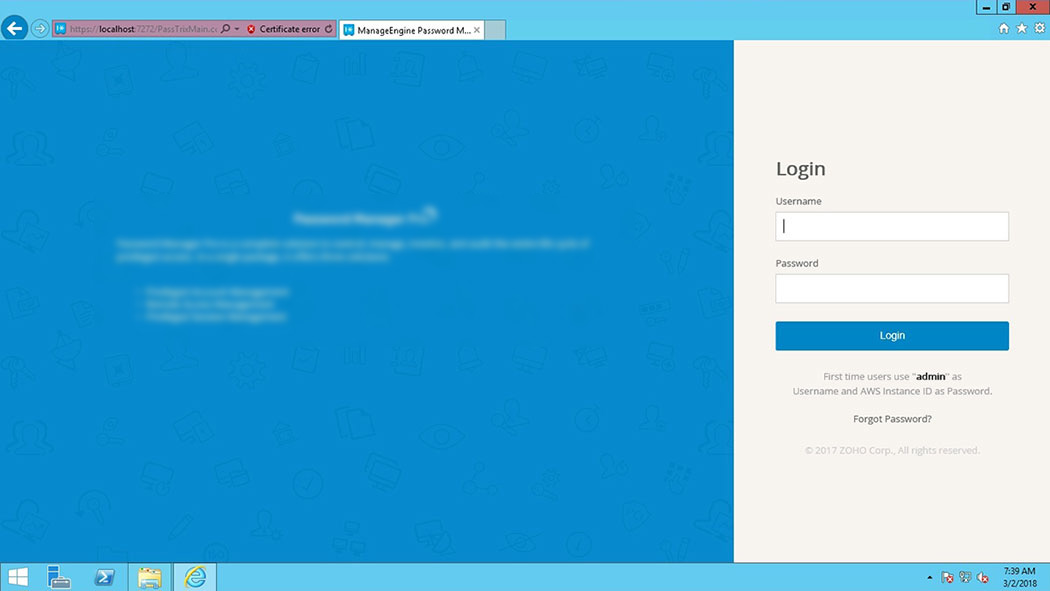 部署实例后,您可以通过 https://localhost 访问 PAM360web界面
