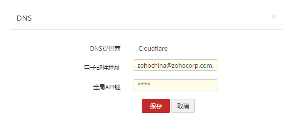- 对于全局API密钥,请使用Cloudflare DNS的域概述页面中的“生成API”密钥选项来生成密钥并将值粘贴在此字段中。