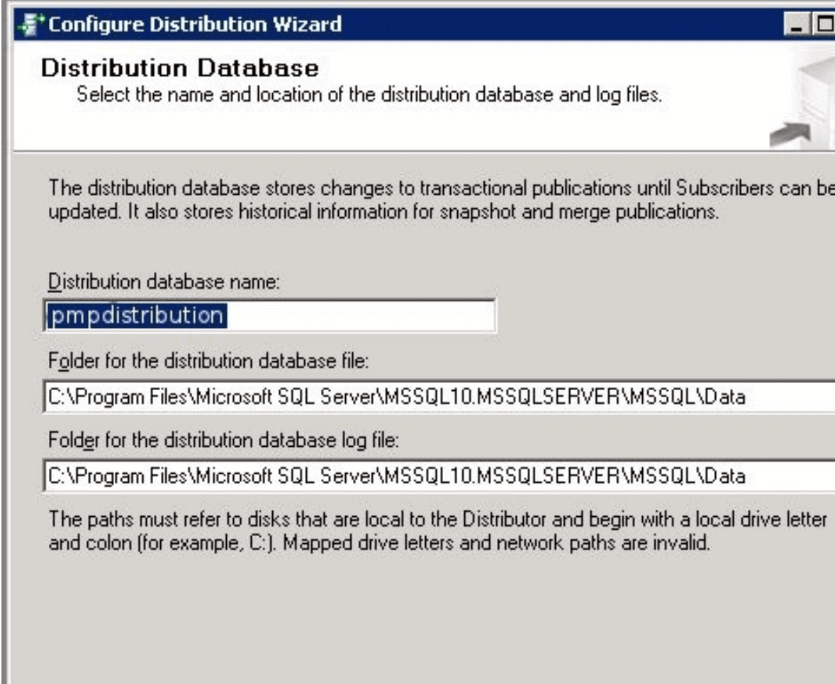 4.为分发服务器指定名称,分别选择要分发数据库文件和日志文件的文件夹,单击下一步。