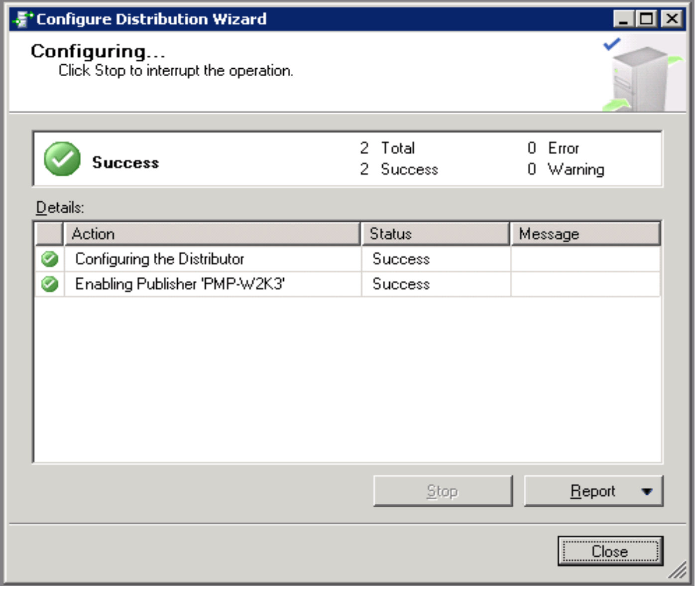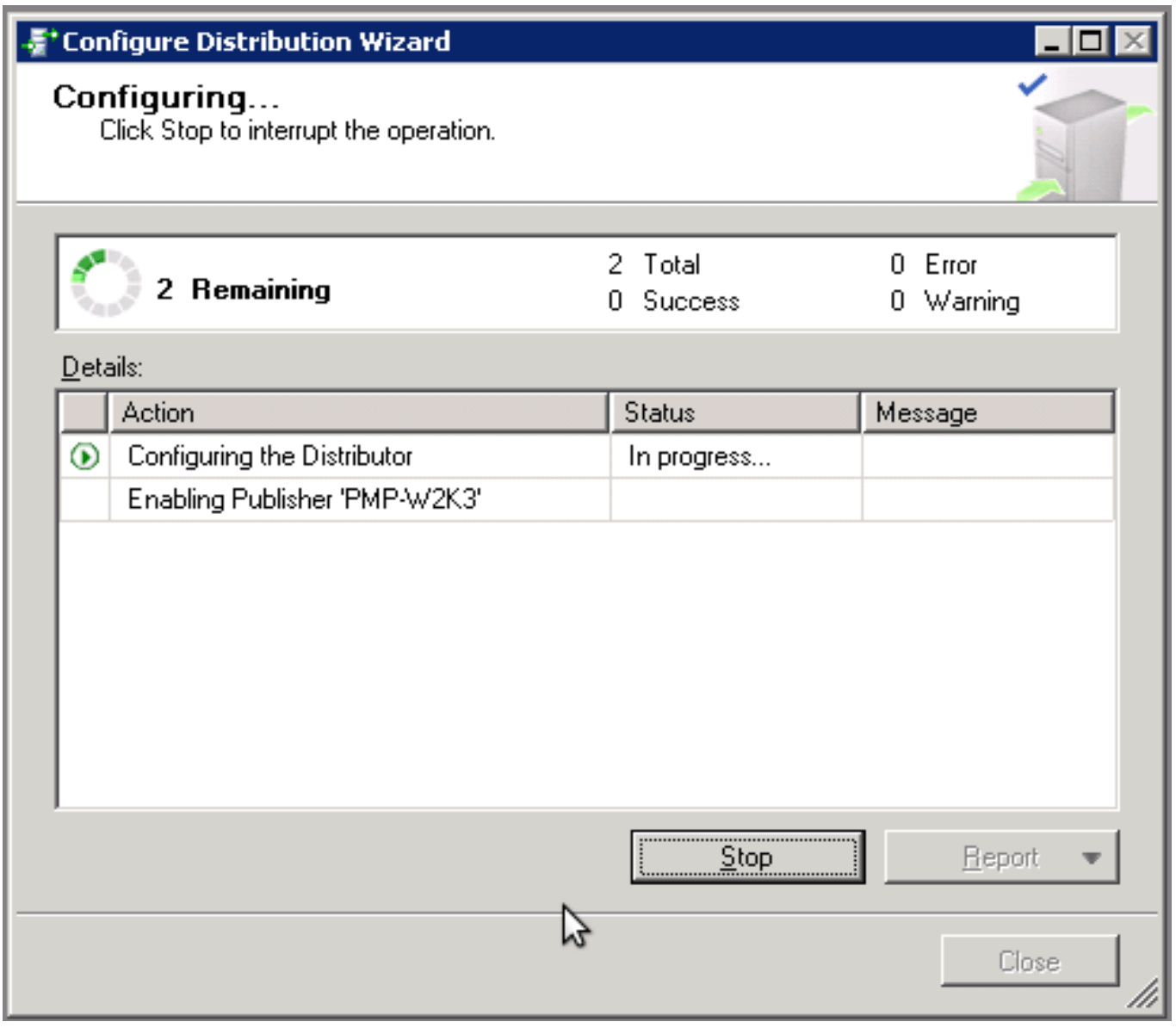 8.单击完成后,您会看到如下屏幕截图所示的配置处理,如果要停止配置分发,请单击"停止"。