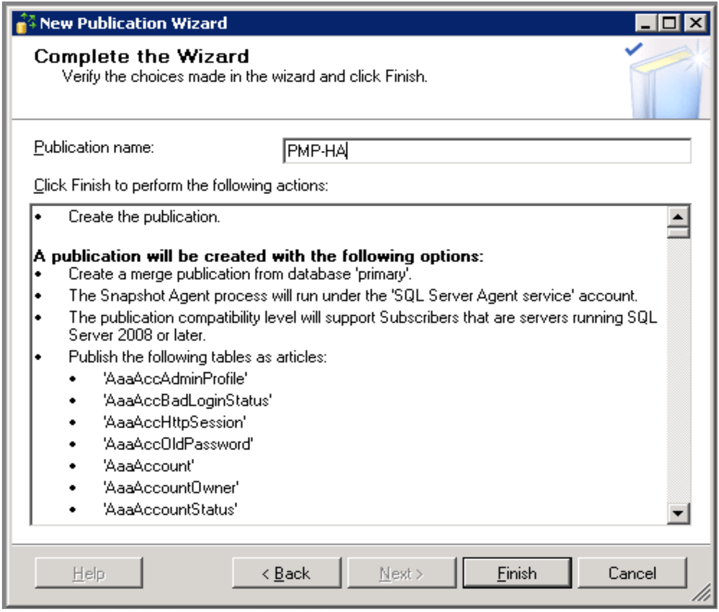 12.指定发布名称。单击完成以完成该过程,或单击上一步以验证您上个步骤中的的选项。 若要详细了解关闭此向导后发生的情况,请参阅下面的屏幕截图。