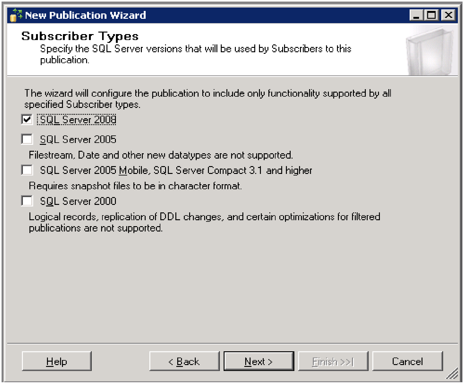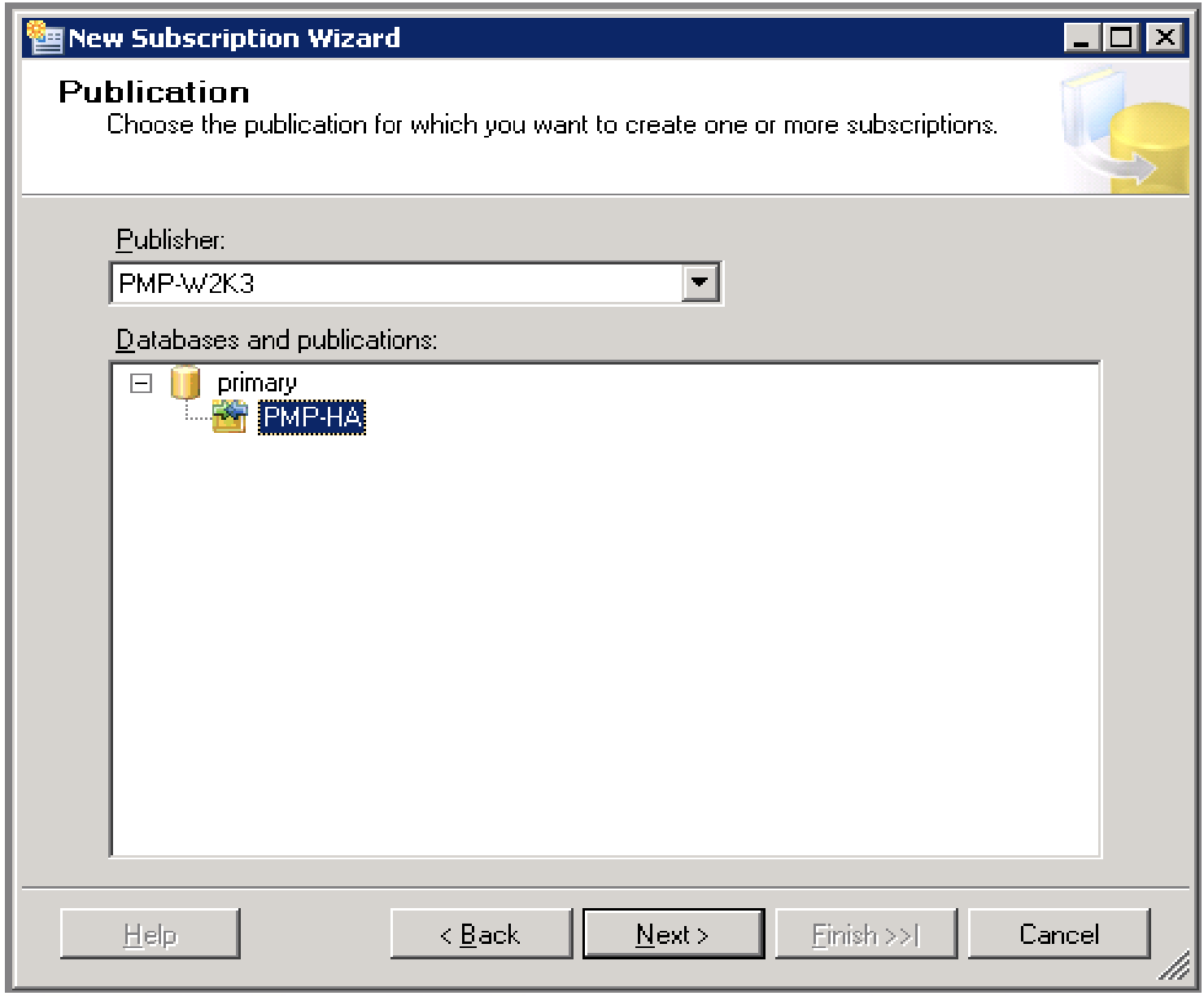 2.在新订阅向导中,选择在第二部分中创建的发布。单击下一步。